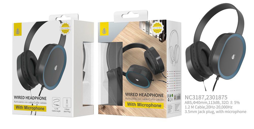 NC3187 AZ Auriculares Casco Vage con Cable y Microfono, 3.5mm Jack Plug, Diseno Ajustable, Diametro 40mm, 1.2M, Azul