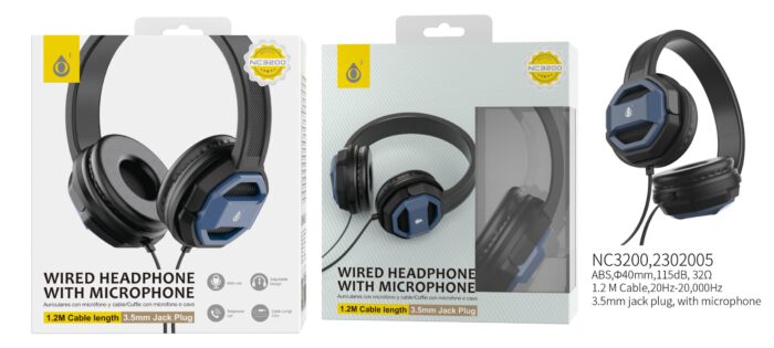 NC3200 AZ Auriculares Casco de cable con Microfono , 3.5mm Jack Plug , 1.2M ,Azul