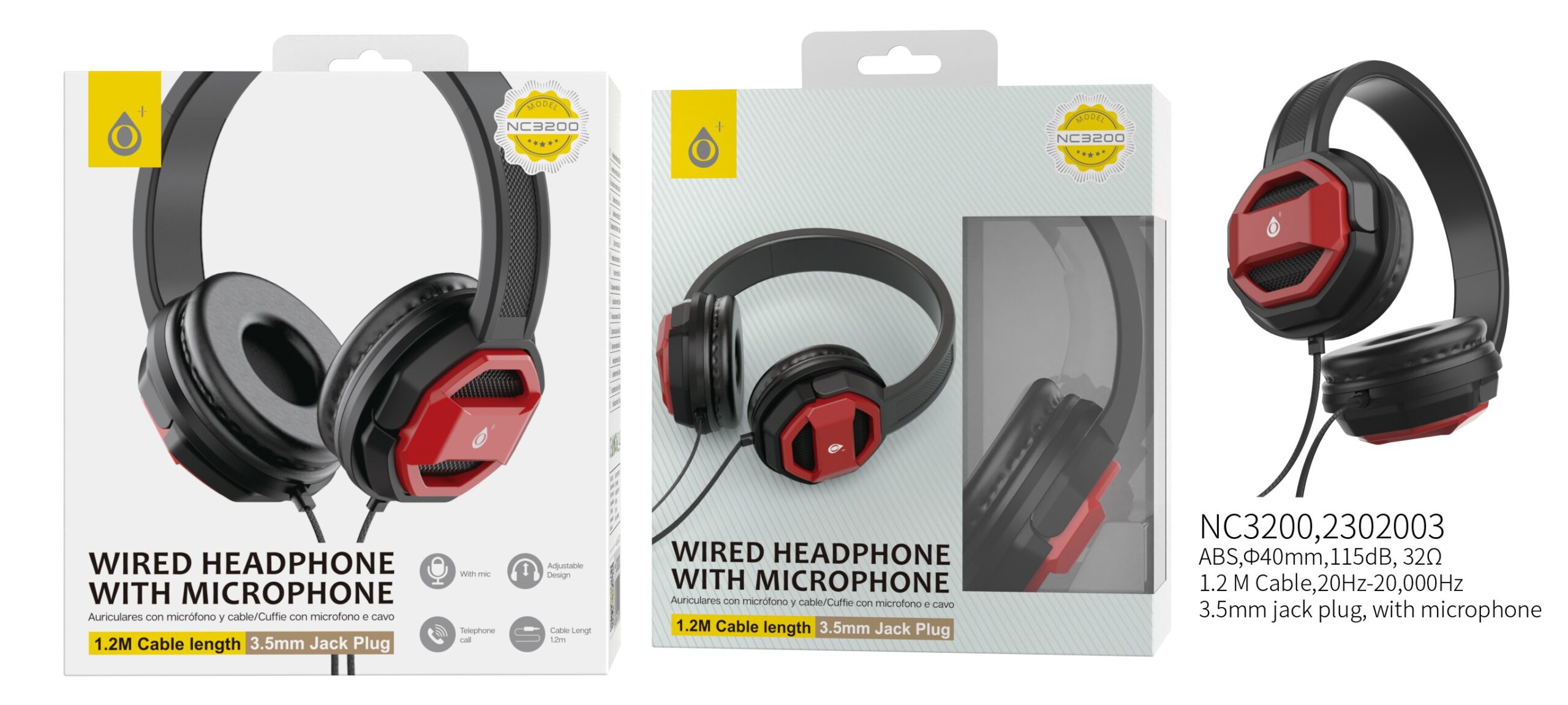 NC3200 RJ Auriculares Casco de cable con Microfono , 3.5mm Jack Plug , 1.2M ,Rojo