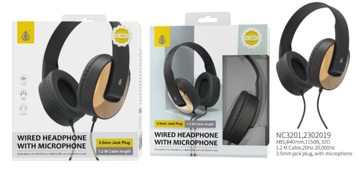 NC3201 OR Auriculares Casco de cable con Microfono , 3.5mm Jack Plug , 1.2M ,Oro