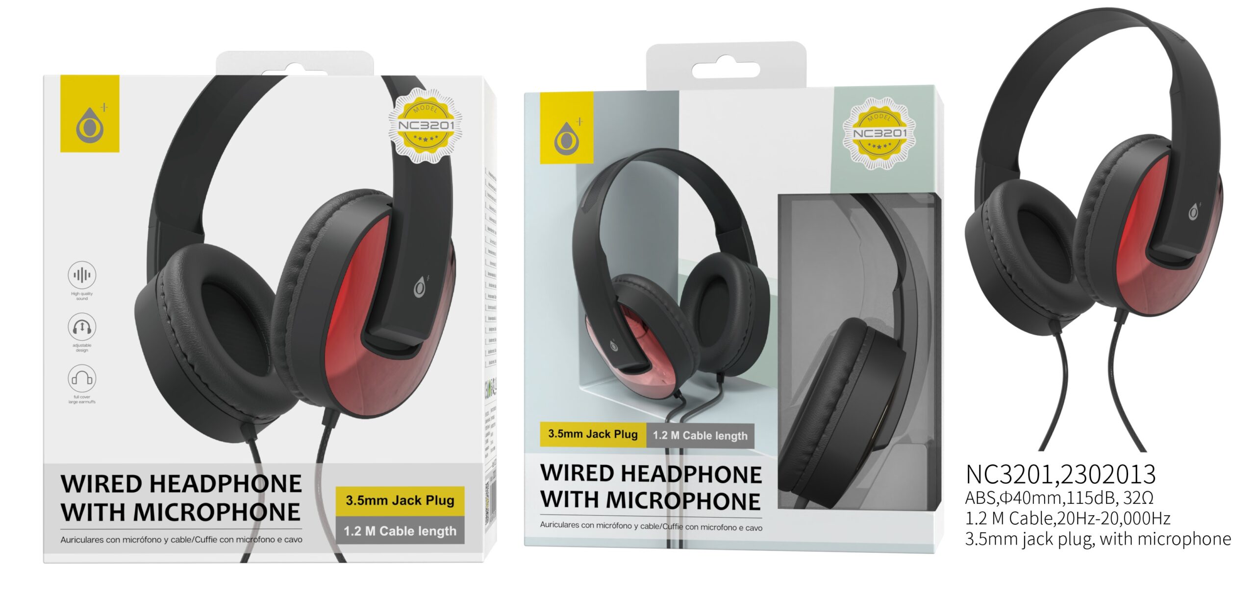 NC3201 RJ Auriculares Casco de cable con Microfono , 3.5mm Jack Plug , 1.2M ,Rojo
