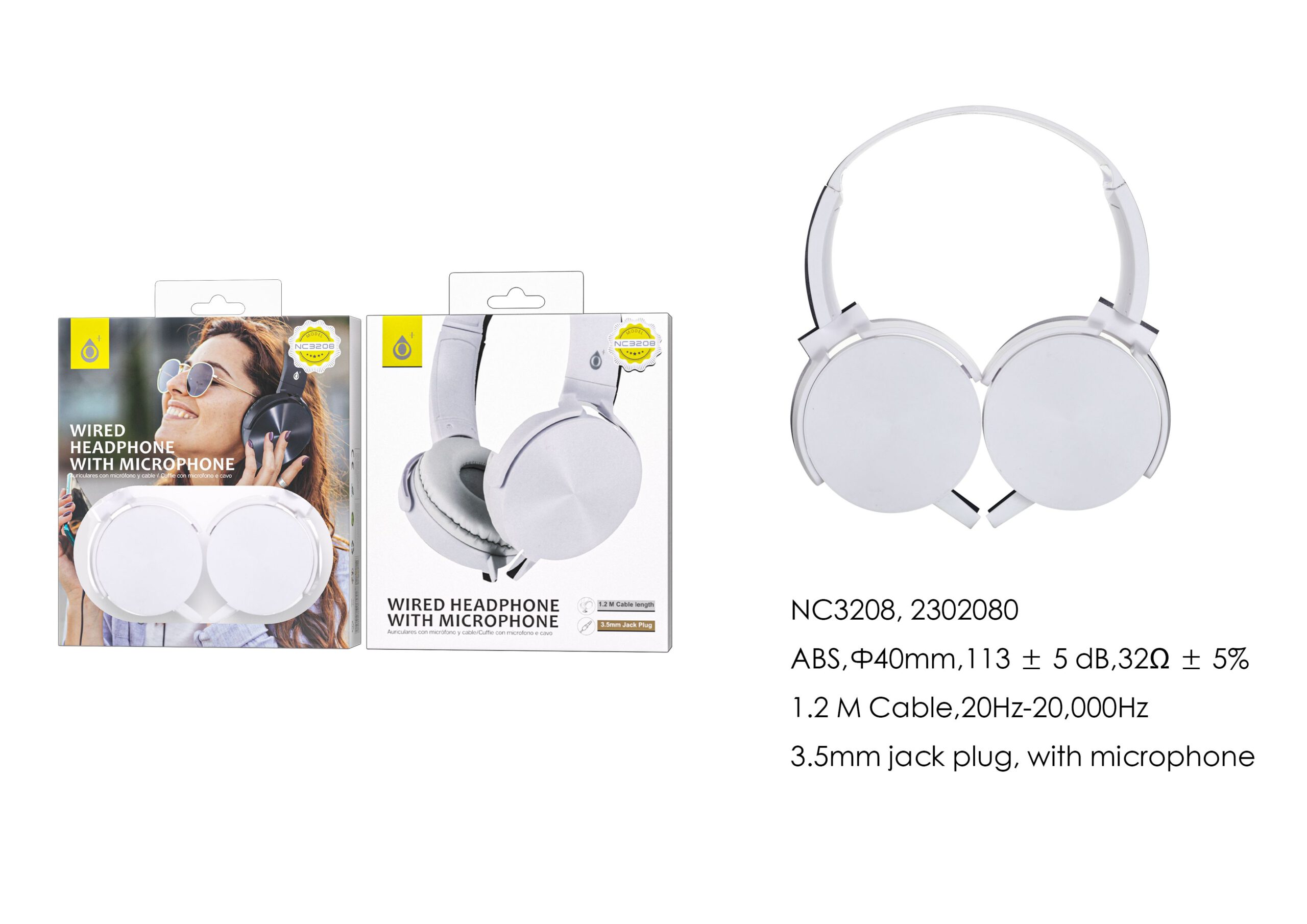 NC3208 BL Auriculares Casco de cable  con Microfono , 3.5mm Jack Plug ,  Cable 1.2M ,Blanco