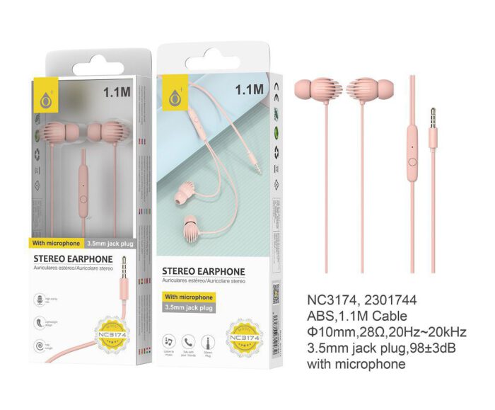 • NC3174 RS Auriculares con Microfono Deluca, Con Boton Multifuncion y Control de Volumen, Longitud 1.1M,Rosa