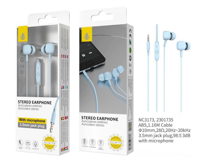 • NC3189 RS Auriculares Ava ,con Microfono, Soporta Control de Volumen y Boton multifunciones, 1.2m,