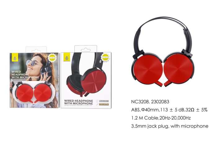 NC3208 RJ Auriculares Casco de cable con Microfono , 3.5mm Jack Plug , Cable 1.2M ,Rojo
