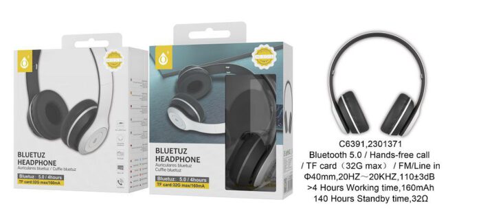 • NC3202 BL Auriculares Casco Bluetooth 5.1 300mAh, TF , Blanco