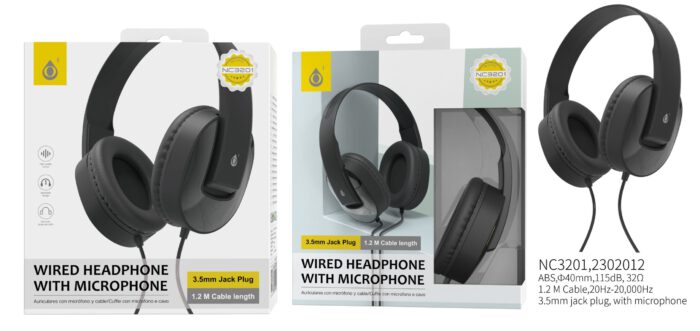 • NC3201 NE Auriculares Casco de cable con Microfono , 3.5mm Jack Plug , 1.2M ,Negro