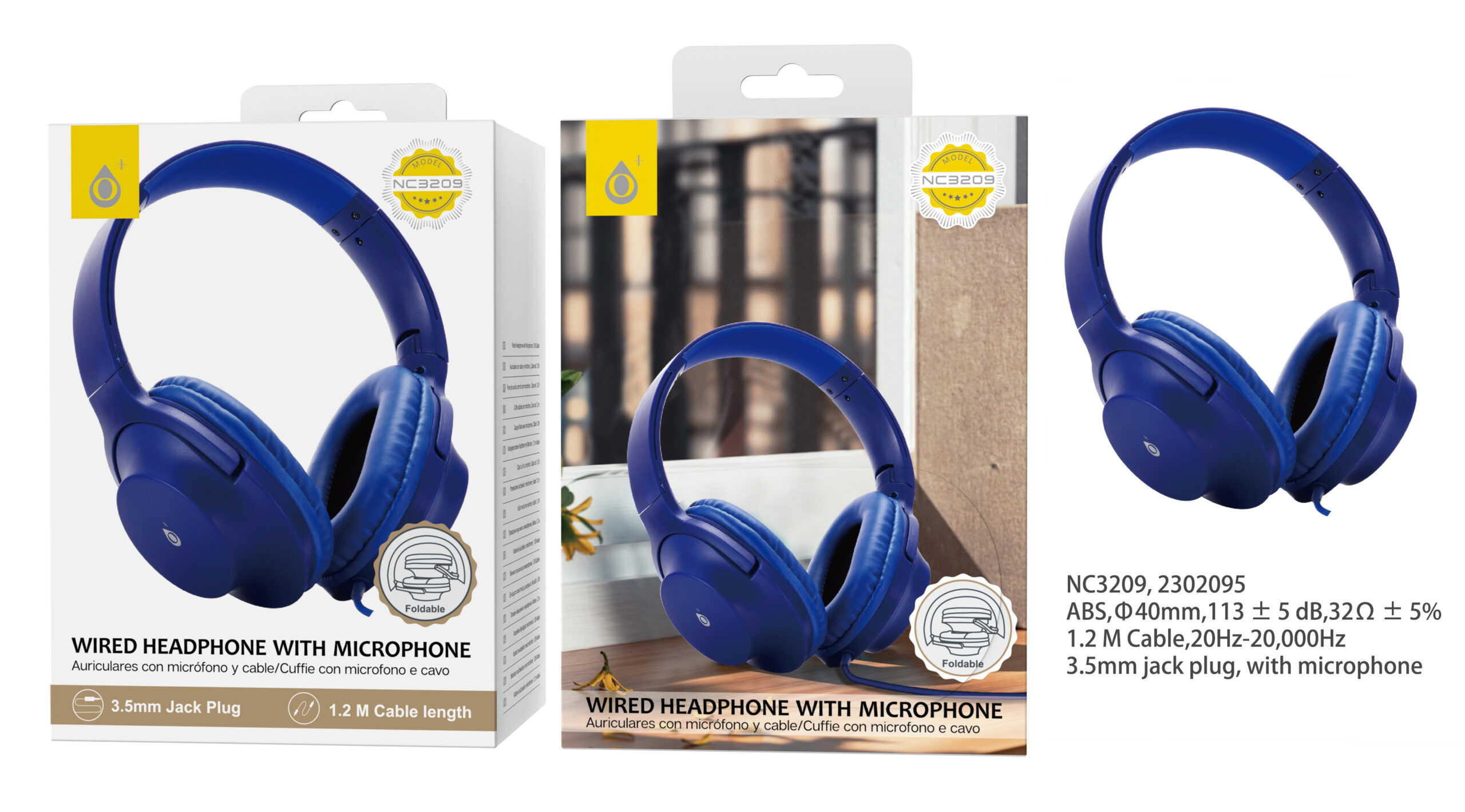 • NC3201 AZ Auriculares Casco de cable con Microfono , 3.5mm Jack Plug , 1.2M ,Azul