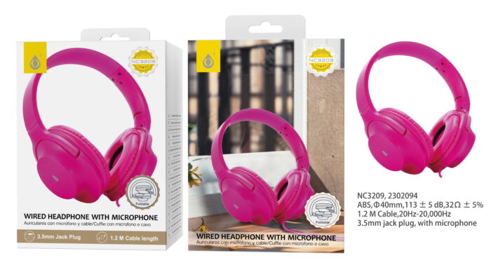 NC3209 RS Auriculares Casco Plegable con cable y Microfono , 3.5mm Jack Plug , 1.2M ,Rosa