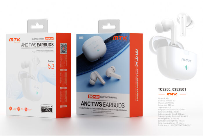 • NC3271 Auriculares TWS Bluetooth 5.3, Bateria (25mAh*2)Con Estuche Recargable 230mAh, Blanco+Gris