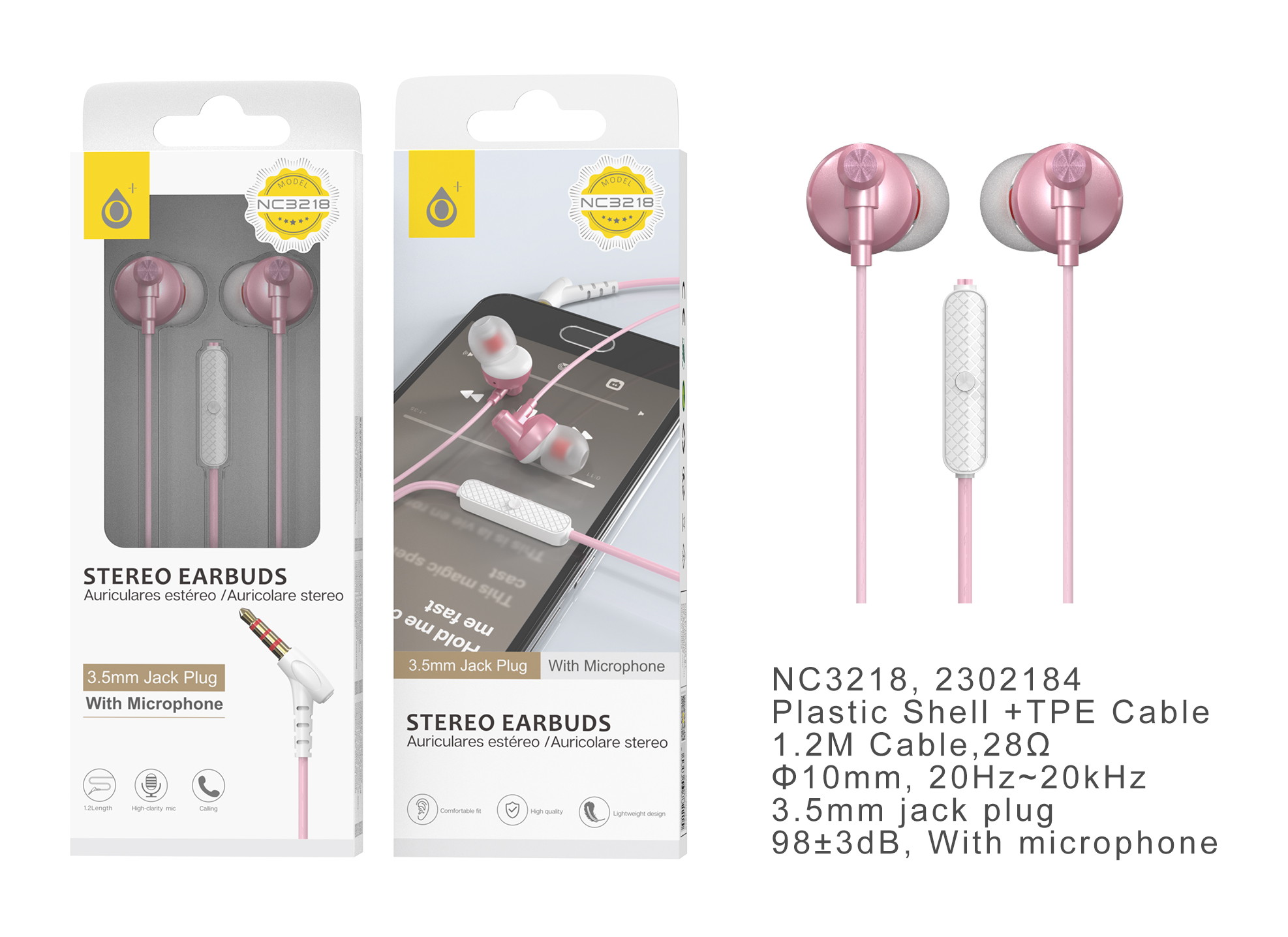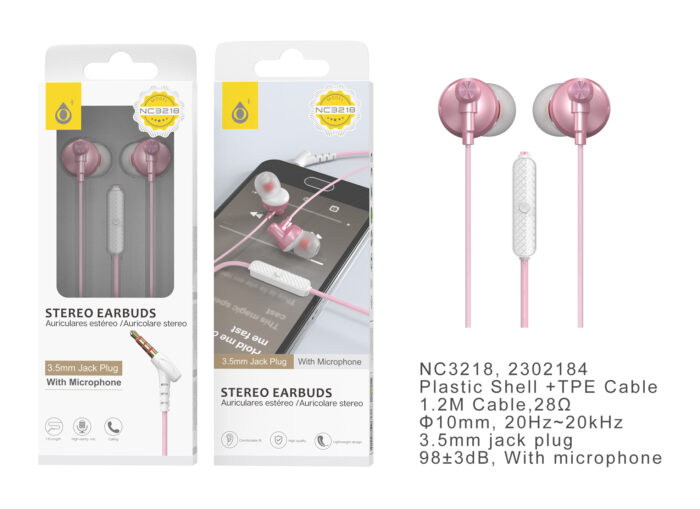 NC3218 RS Auricular Stripe con Microfono y  Boton multifuncion, 1.2m, Rosa