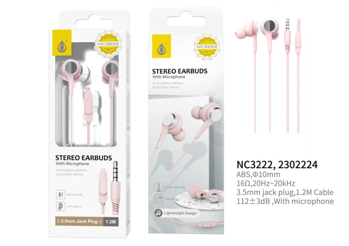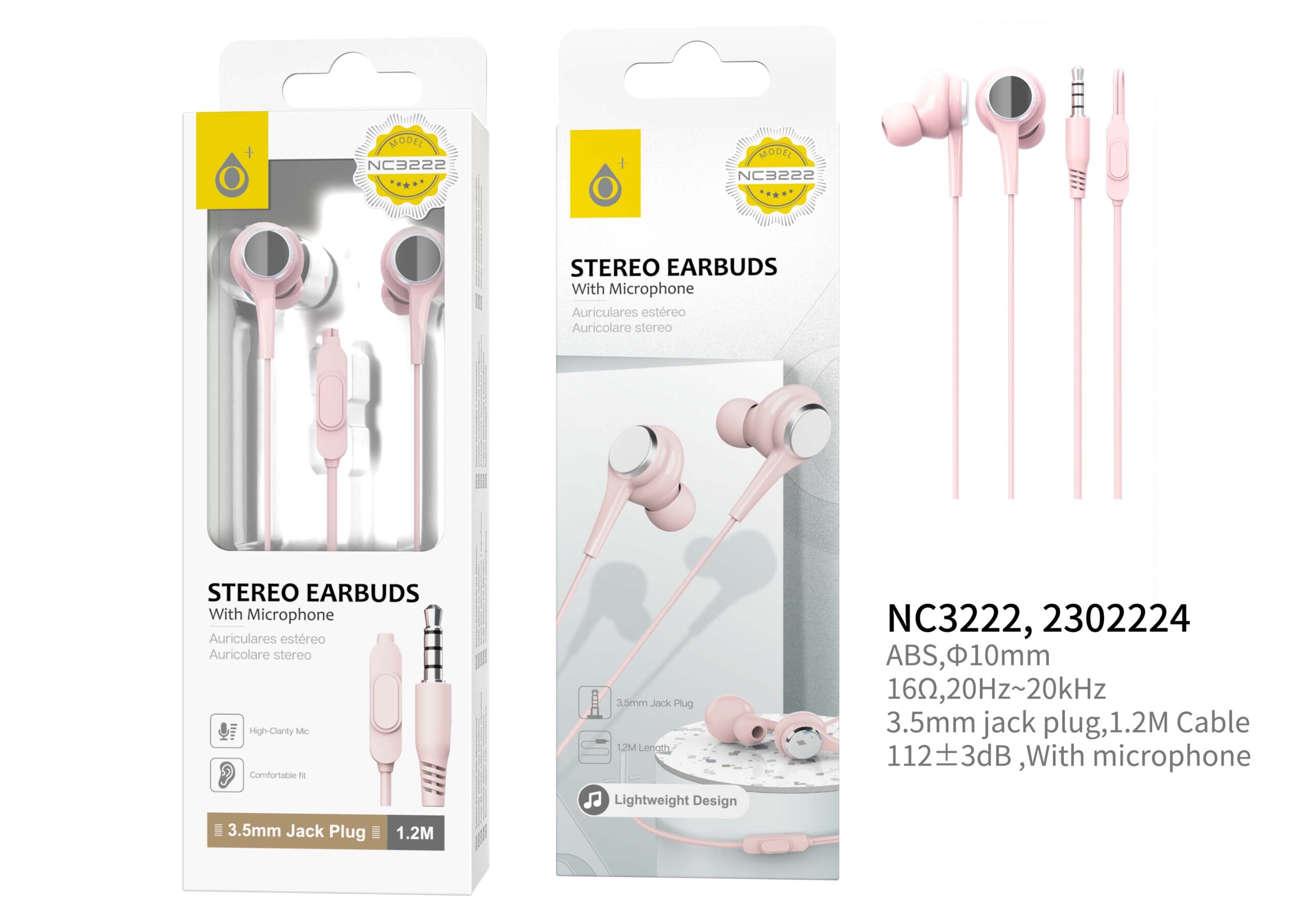 • NC3189 NE Auriculares Ava ,con Microfono, Soporta Control de Volumen y Boton multifunciones, 1.2m,