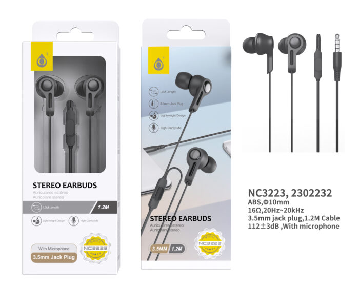 NC3223 NE Auricular YASIR con Microfono y Boton multifuncion, 1.2m, Negro