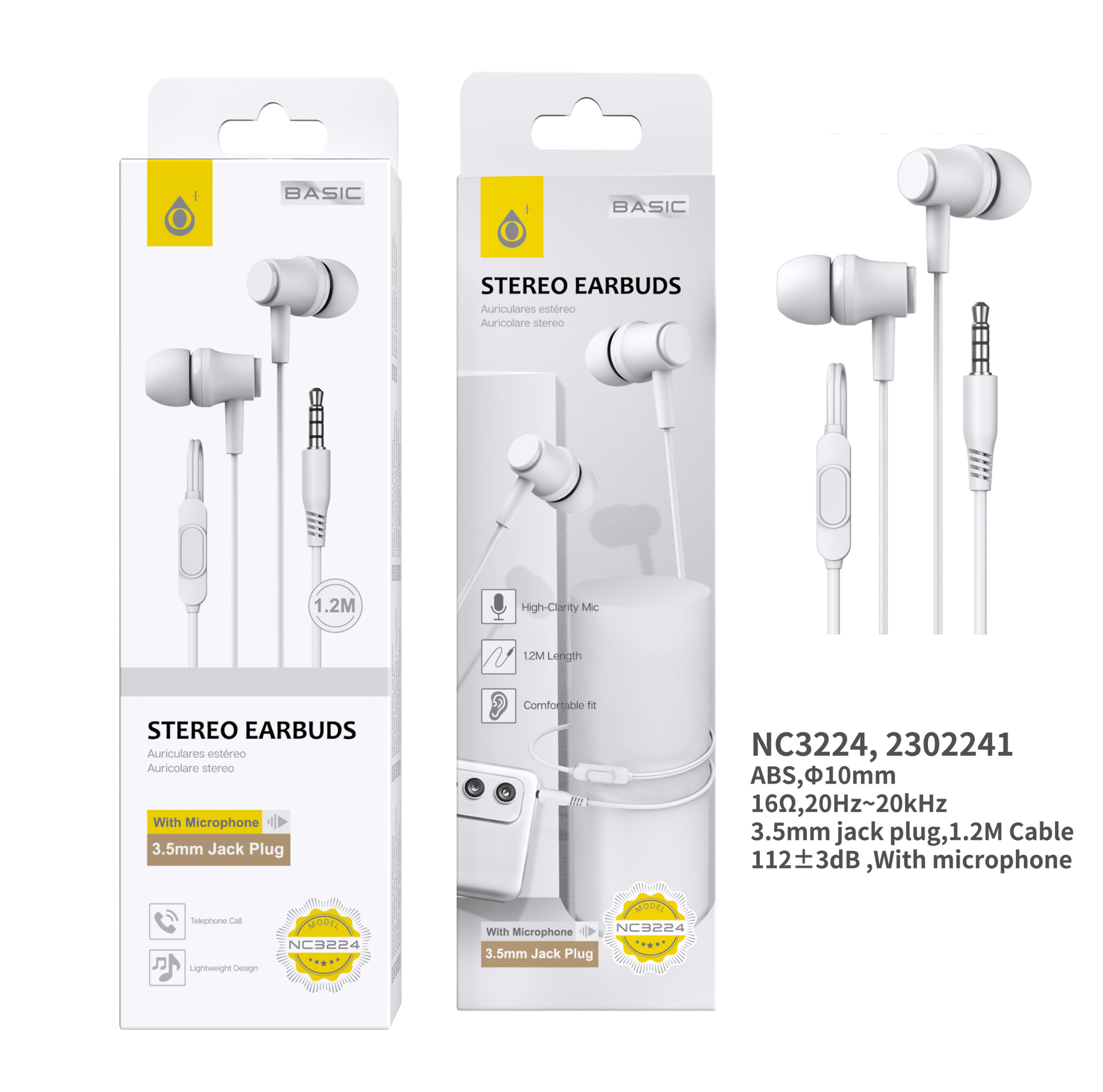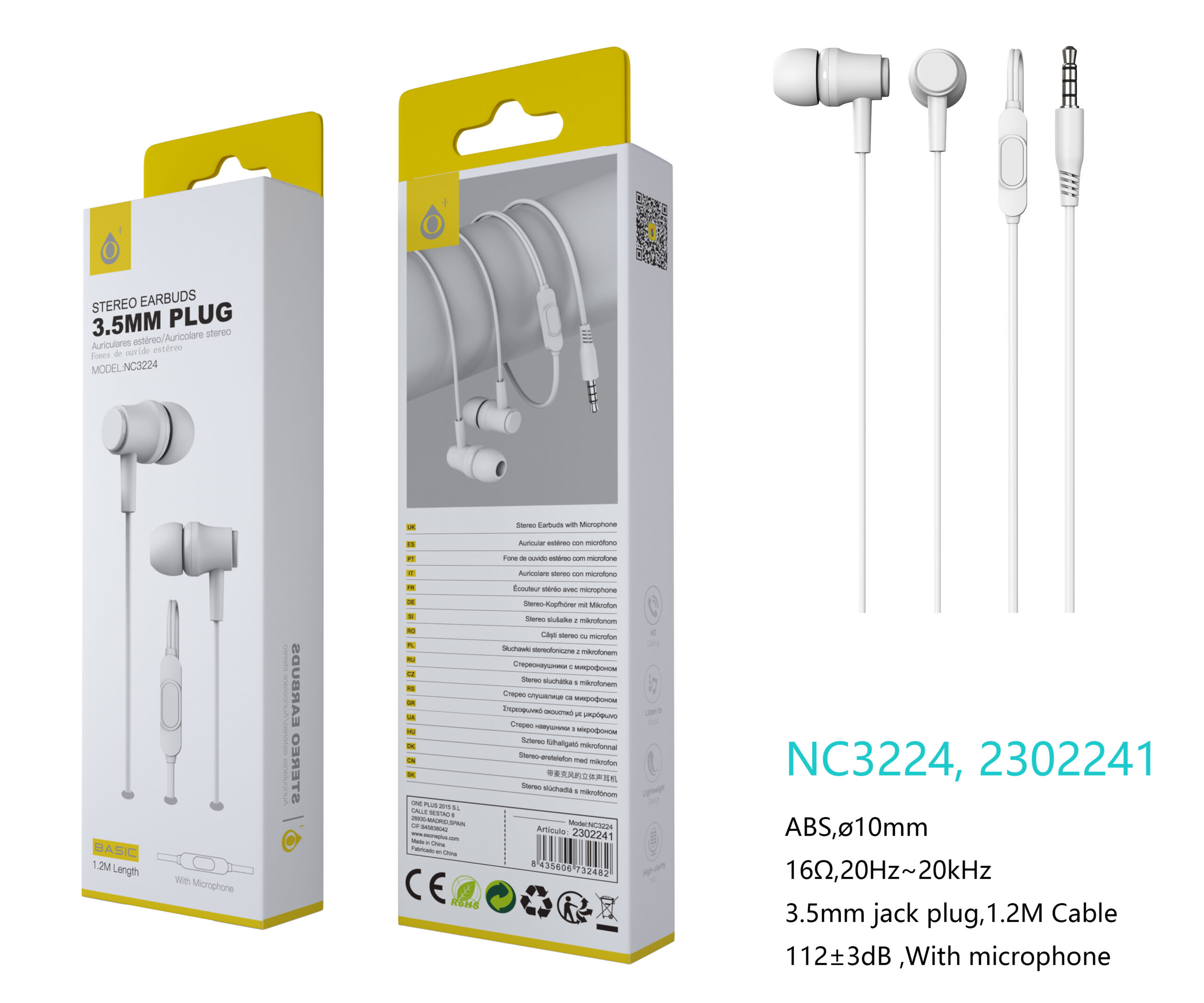 NC3224 BL Auriculares con microfono S.Basic Singh, con boton multifunciones, cable 1.2M , Blanco