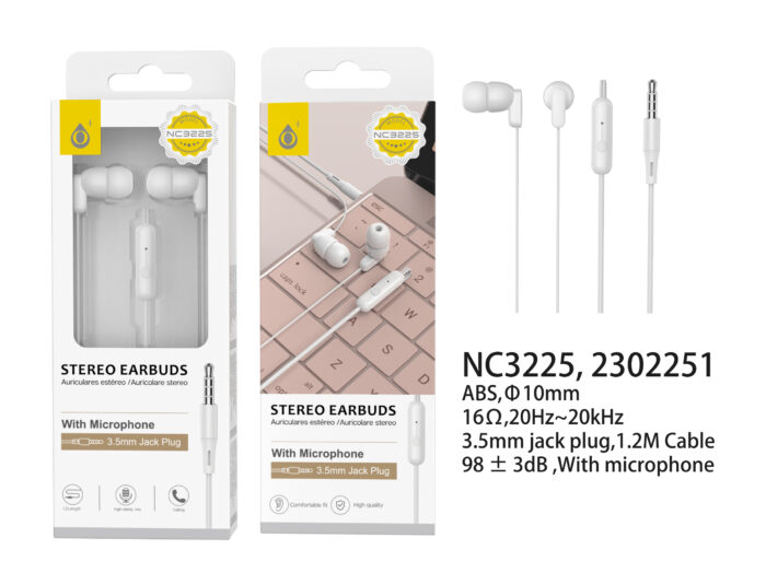 NC3225 BL Auriculares con microfono Takeo, con boton multifunciones, sensibilidad 98±3 dB, cable 1.2M , Blanco