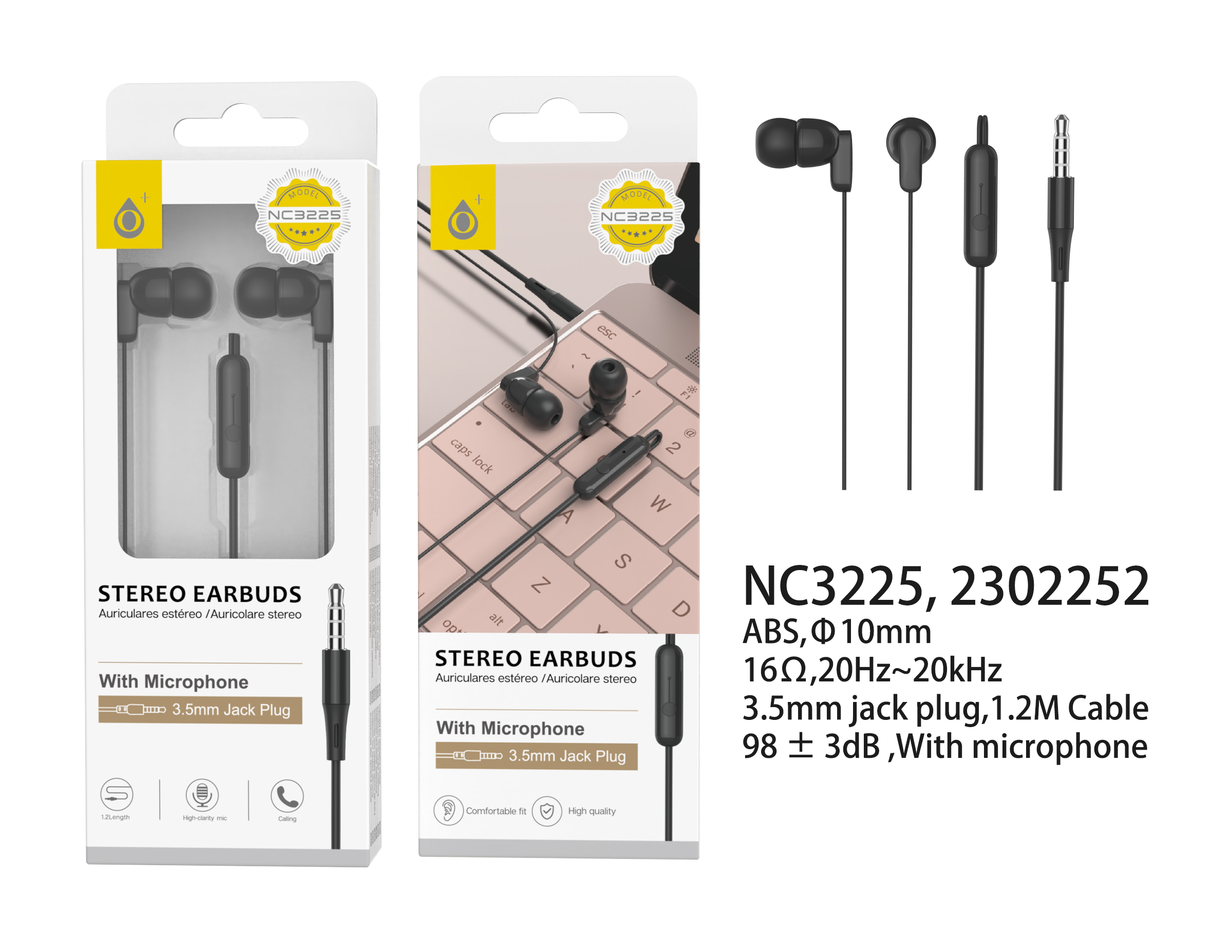 • NC3189 NE Auriculares Ava ,con Microfono, Soporta Control de Volumen y Boton multifunciones, 1.2m,