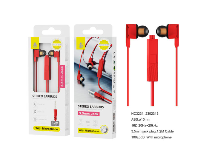 NC3231 RJ Auricular Lea con Microfono, Soporta llamada y Musica, Cable 1.2m, Rojo