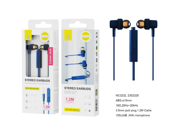 NC3232 AZ Auricular Zoe con Microfono, Soporta llamada y Musica, Cable 1.2m, Azul