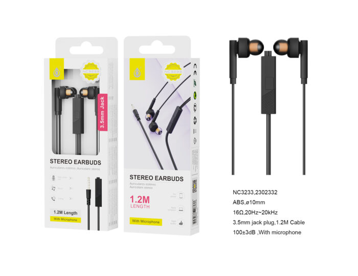 NC3233 NE Auricular Emma con Microfono, Soporta llamada y Musica, Cable 1.2m, Negro