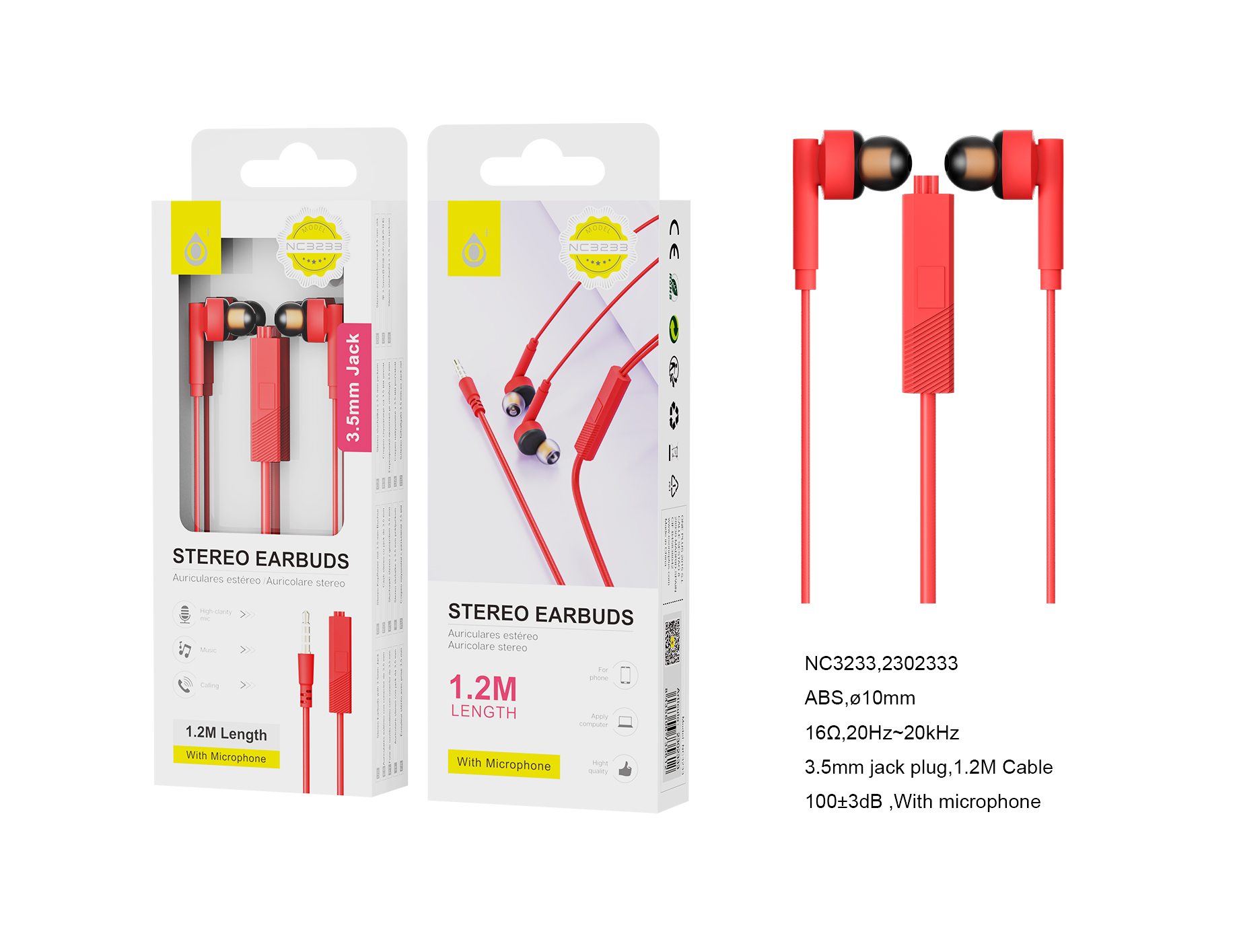 NC3233 RJ Auricular Emma con Microfono, Soporta llamada y Musica, Cable 1.2m, Rojo