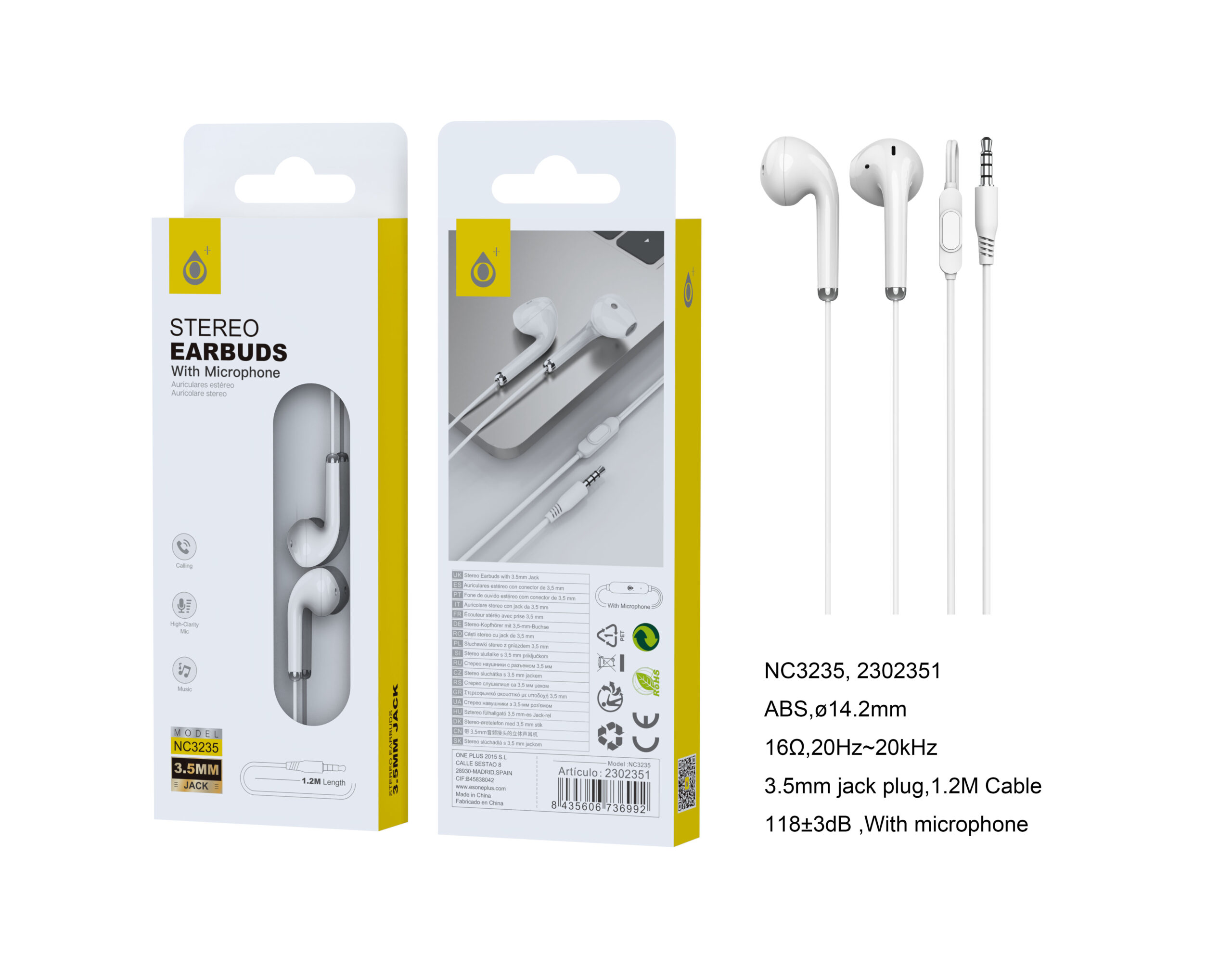 NC3235 BL Auricular Anae con Microfono y  Boton multifuncion  ,Cable 1.2m, Blanco