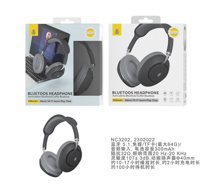 NC3244 BL Auricular  Bluetooth 5.3, Soporta Mano libre/FM/TF(64GB Max)/Entrada de Audio, Bateria 200mAh, Blanco