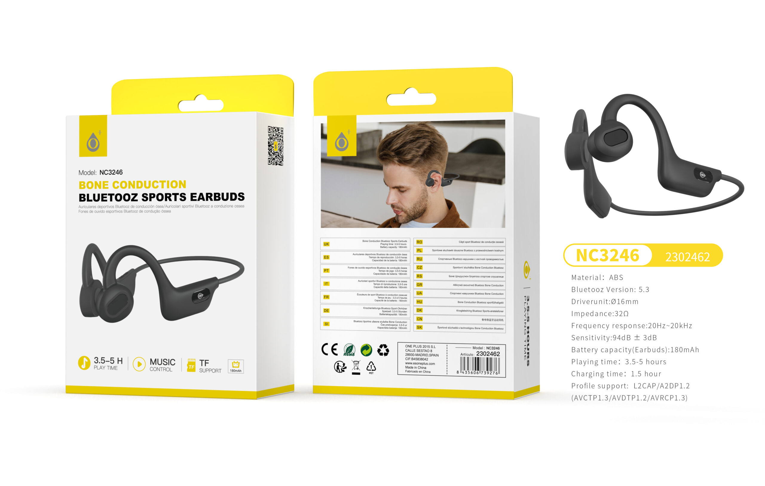 NC3246 NE Auricular Deportivo Con Conduccion osea  Bluetooth 5.3, Bateria 180mAh, Negro