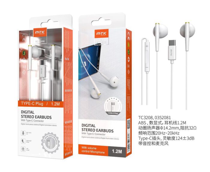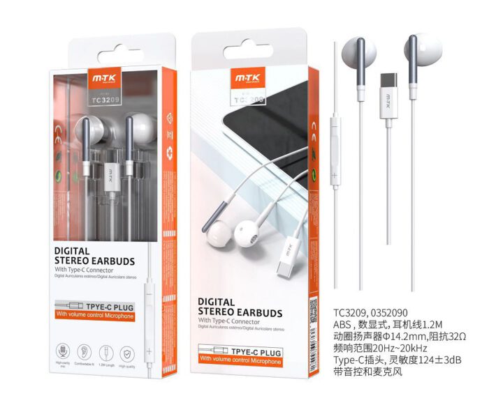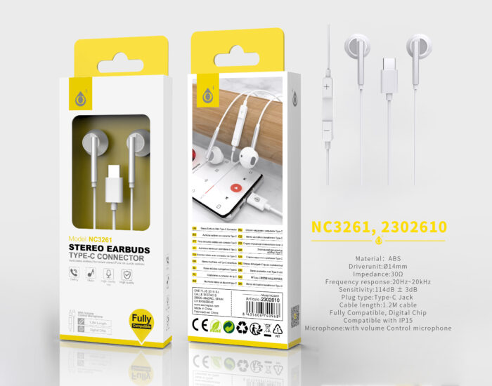 NC3261 BL Auricular TYPE-C Hilda con Microfono y Control de Volumen, Compatible con Apple Type-C, Soporta llamada y Musica, Cable 1.2m, Blanco