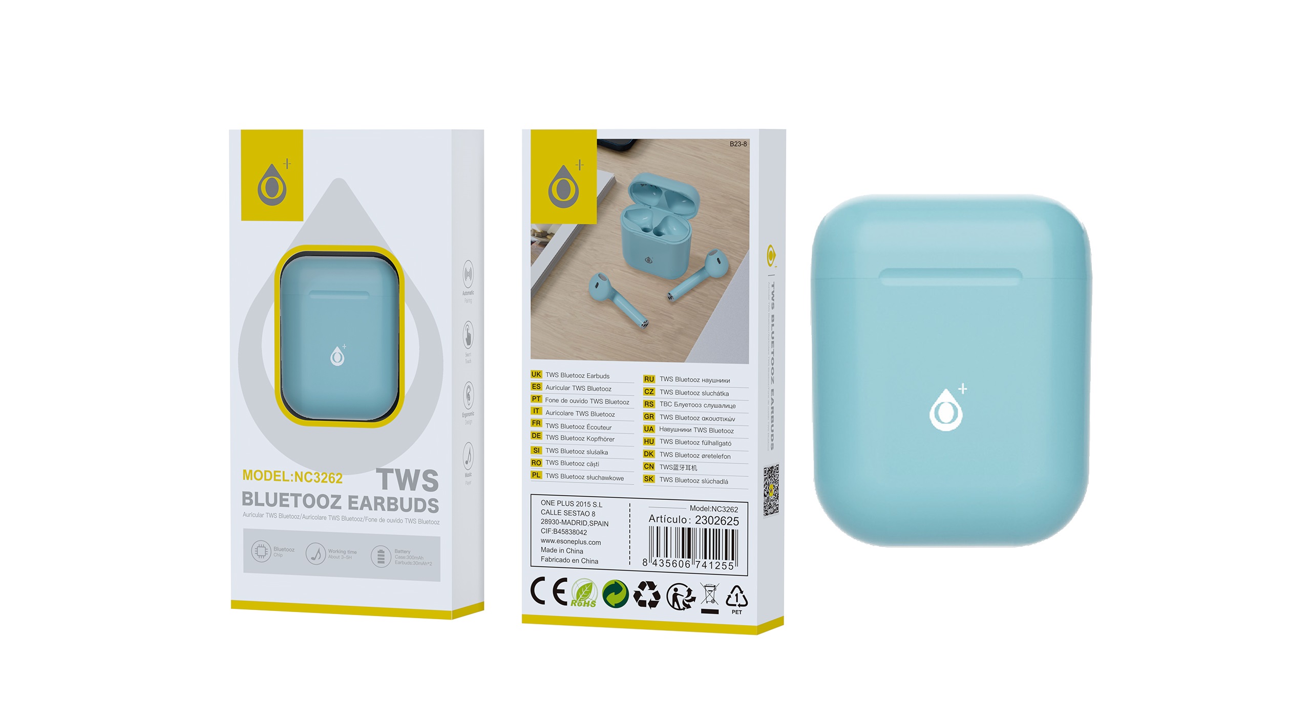 NC3262 AZ Auriculares TWS Bluetooth 5.3, Bateria (30mAh*2)Con Estuche Recargable 300mAh, Azul