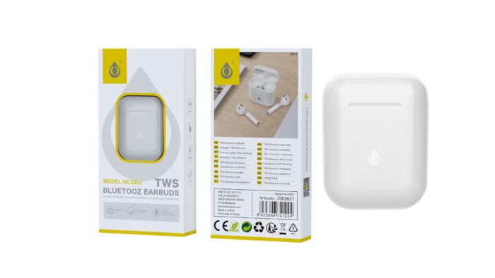 • NC3269 BL Auriculares TWS Bluetooth 5.3 con indicador bateria, Bateria (30mAh*2)Con Estuche Recargable 230mAh, Blanco