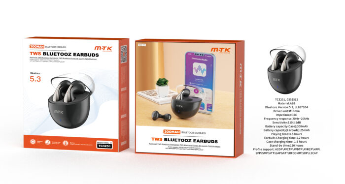 • TC3251 BL Auriculares TWS Bluetooth 5.3, Bateria (25mAh*2)Con Estuche Recargable 300mAh, Blanco