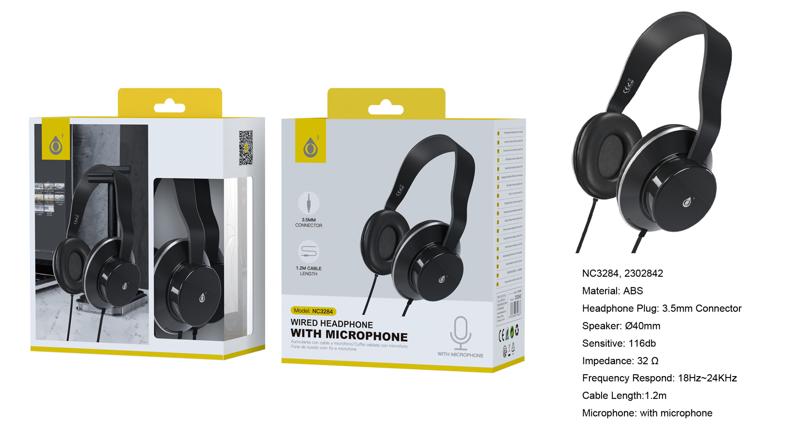 • NC3201 NE Auriculares Casco de cable con Microfono , 3.5mm Jack Plug , 1.2M ,Negro