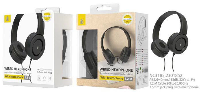 • NC3187 NE Auriculares Casco Vage con Cable y Microfono, 3.5mm Jack Plug, Diseno Ajustable, Diametro 40mm, 1.2M, Negro