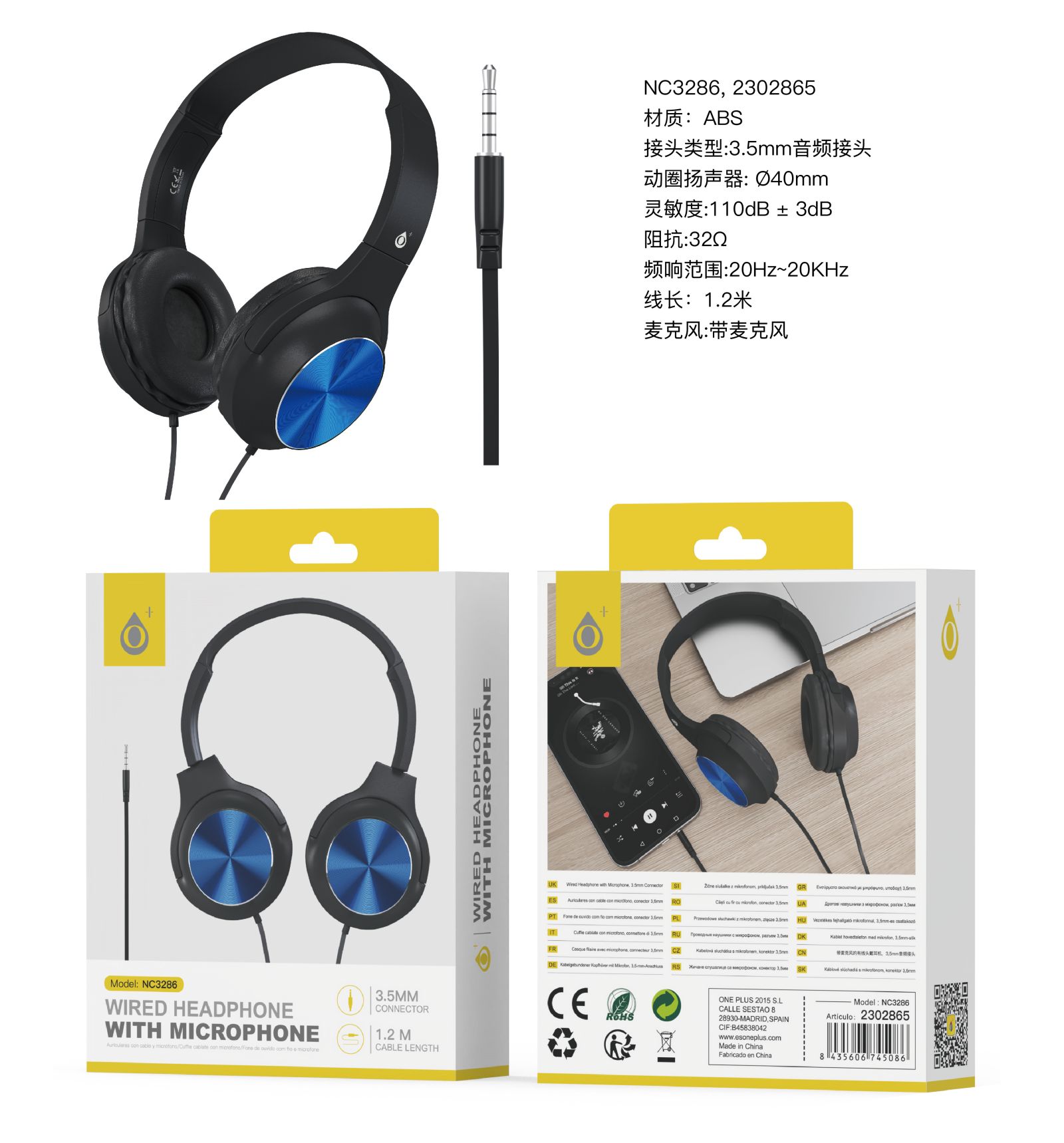 • NC3201 AZ Auriculares Casco de cable con Microfono , 3.5mm Jack Plug , 1.2M ,Azul