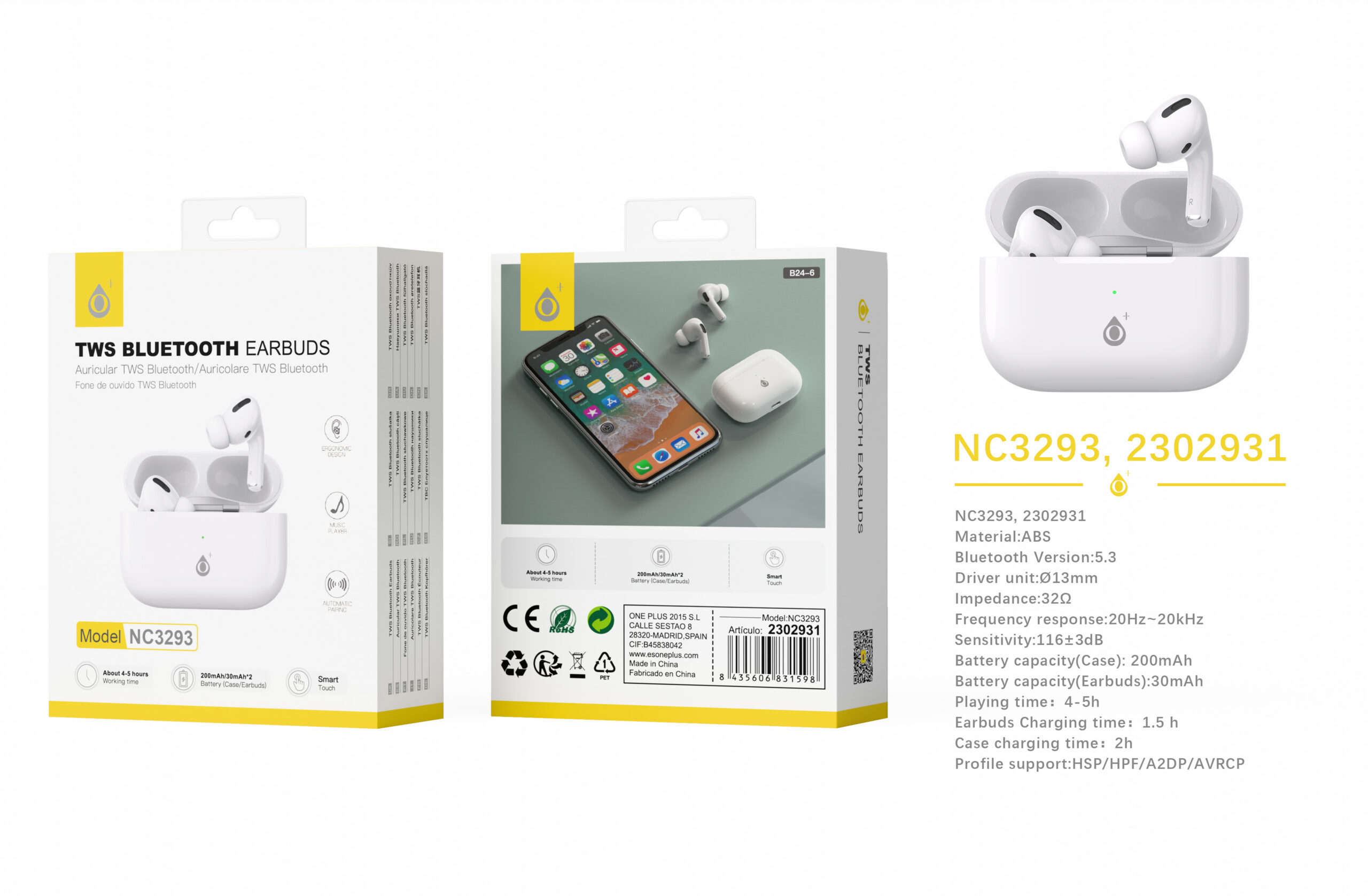 NC3293 BL Auriculares TWS Bluetooth 5.3, Bateria (30mAh*2) Con Estuche Recargable 200mAh, Blanco