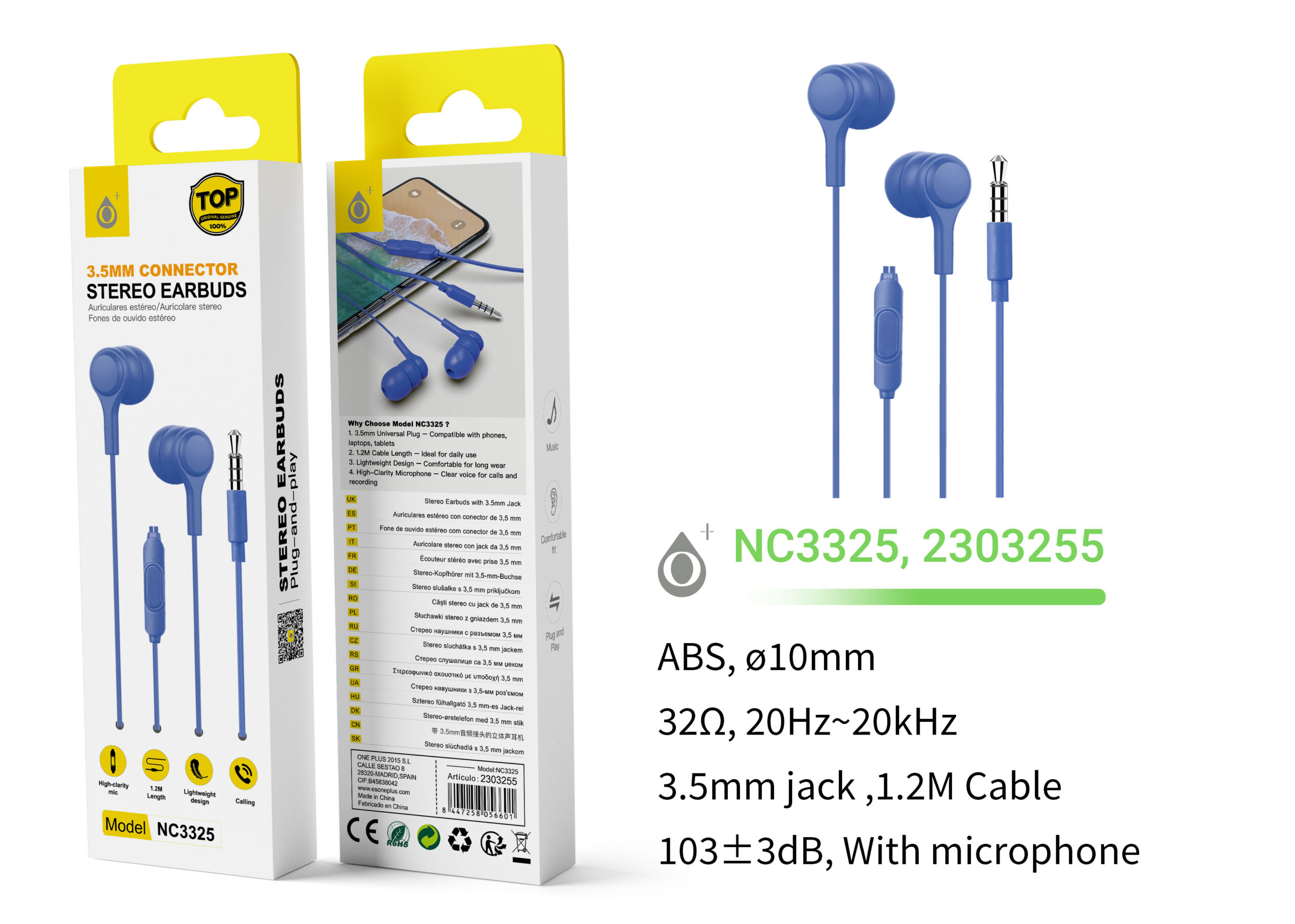 NC3325 AZ Auricular Rivo con microfono,Cable 1.2M, Azul