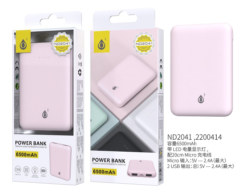 ND2041 RS PoweBank Iris 6500mAh con indicador luz led,Rosa