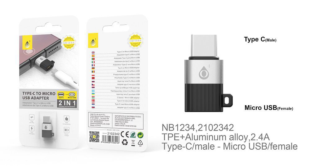 NE NB1234 Adaptador Micro USB a TYPE C ,Negro