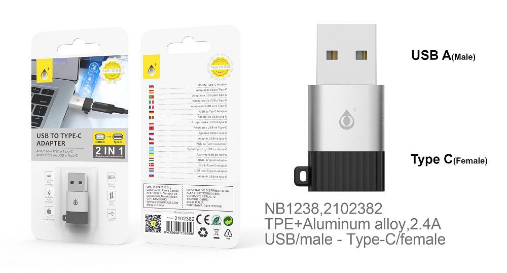 NE NB1238 Adaptador TYPE C  a  USB,Negro