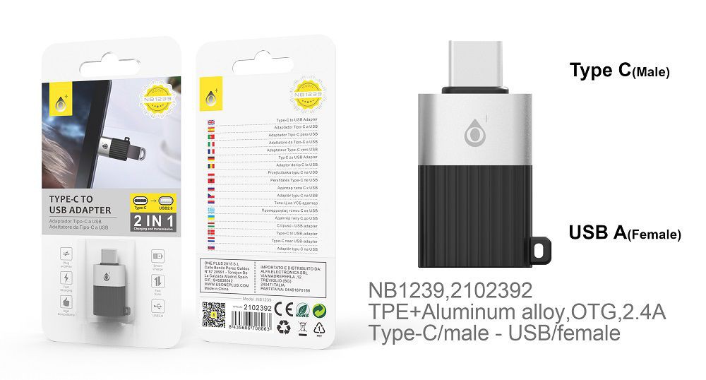 NE NB1239 Adaptador  OTG a TYPE C ,Negro