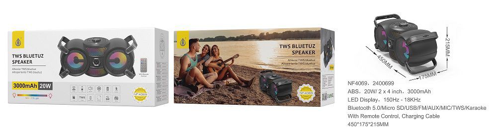 NE NF4069 Altavoz Bluetooth TWS Metis BTS 5.0, Pantalla luz LED 20W 3000mAh, BTS/FM/USB/TF /Karaoke/