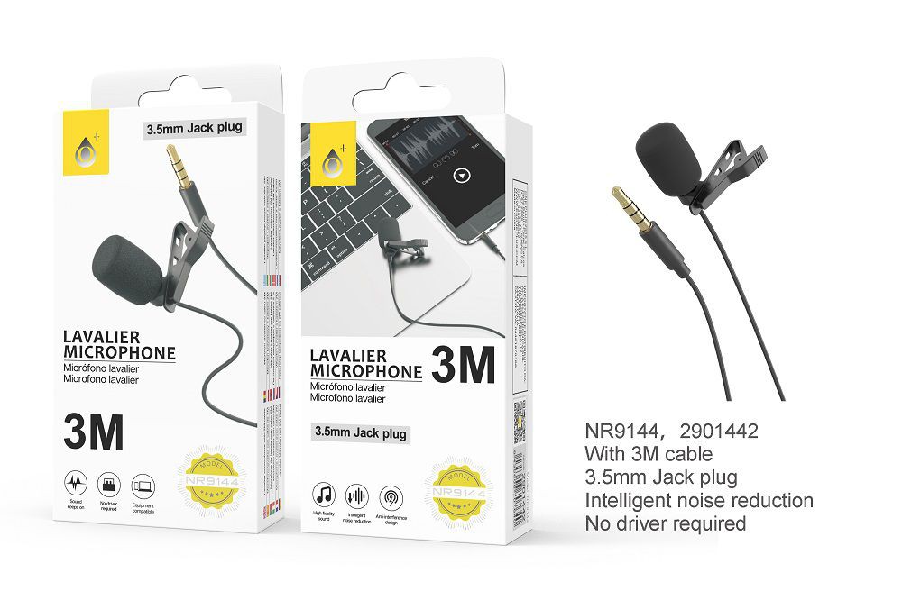 NE NR9144 Mini Microfono 3,5mm Audio JACK Con Clip de Solapa,