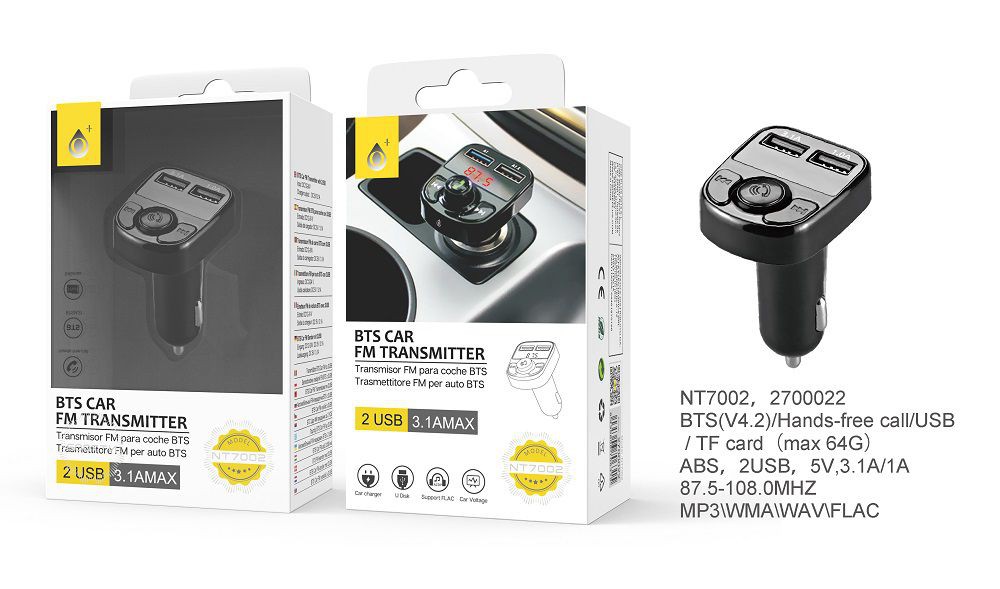 NE NT7002 Transmisor Blutooth 4,2 De FM Con Microfono Y Pantalla LED, BTS/USB/TF CARD (64MAX),2USB 3,1A Max, Negro