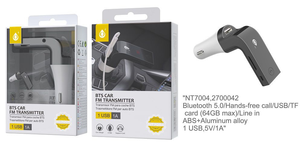 NE NT7004 Transmisor FM Aluminio + ABS Bluetooth 5,0 De Coche ,Con Manos Libres/USB/ TF CARD (64GB MAX)