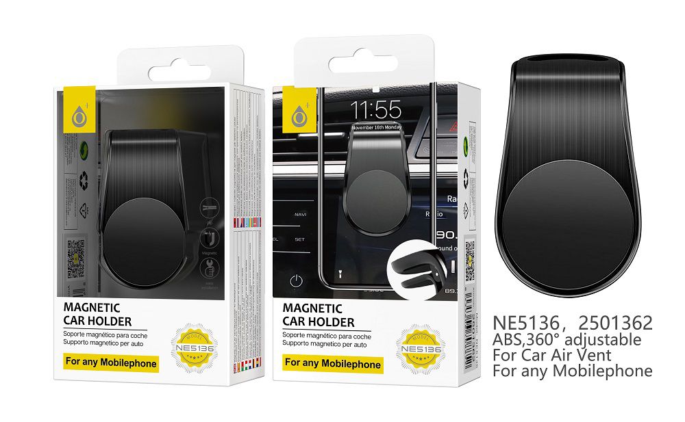 • NE5216 NE Soporte Universal de coche para movil airvent magnetico giratoria 360° , Clip 23mm Para movil 4-6.8 Pulgada , Negro