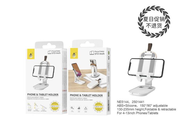 NE5144 BL Soporte para telefonos moviles y tablet de 4-13 pulgadas, Plegable y Retratil, Con 13-23,5cm ajuste de Altura y angulo de 90?150? BLANCO