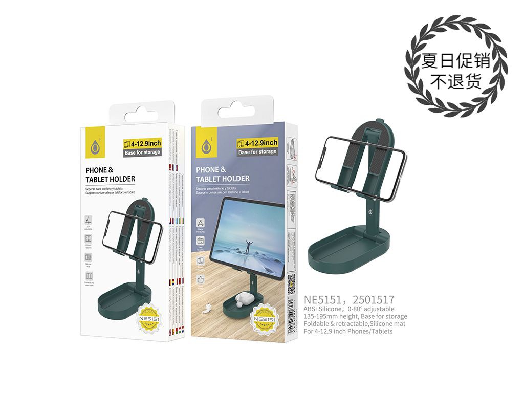 NE5151 VE Soporte Universal para Movil y Tablet de 4-12,9 pulgadas,con materia Silicona Anti-Deslizante, Ajuste de Altura, Base Soporte, Verde