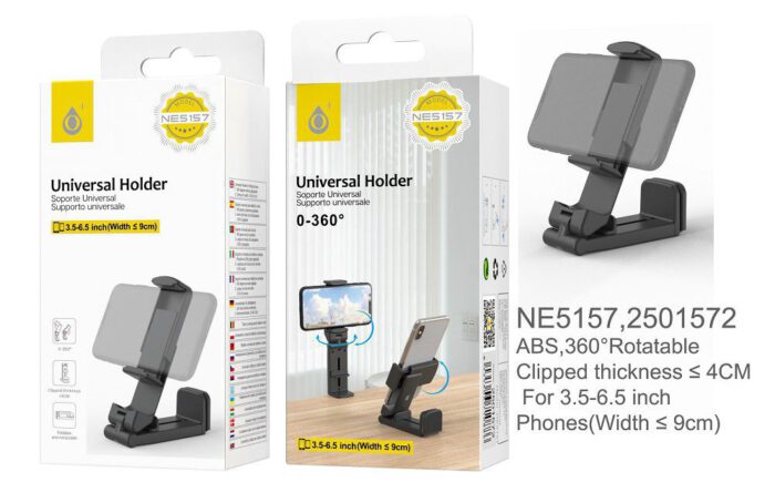 NE5157 NE Soporte Universal para Movil 3.5-6.5 con rotacion de 360 altura ajustable, plegable y retrétil, Negro