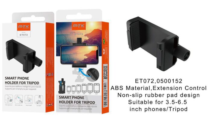 • NE5364 NE Adaptador con soporte de movil para tripode con giro 360°, Para movil 4-7 Pulgadas,Negro