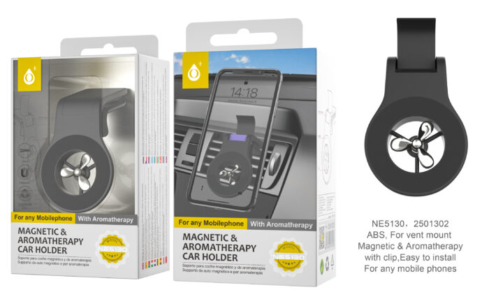 • NE NE5130 Soporte de Coche Magnetico con Clip para Rejilla de Aire, con tira de Aromaterapia, Negro
